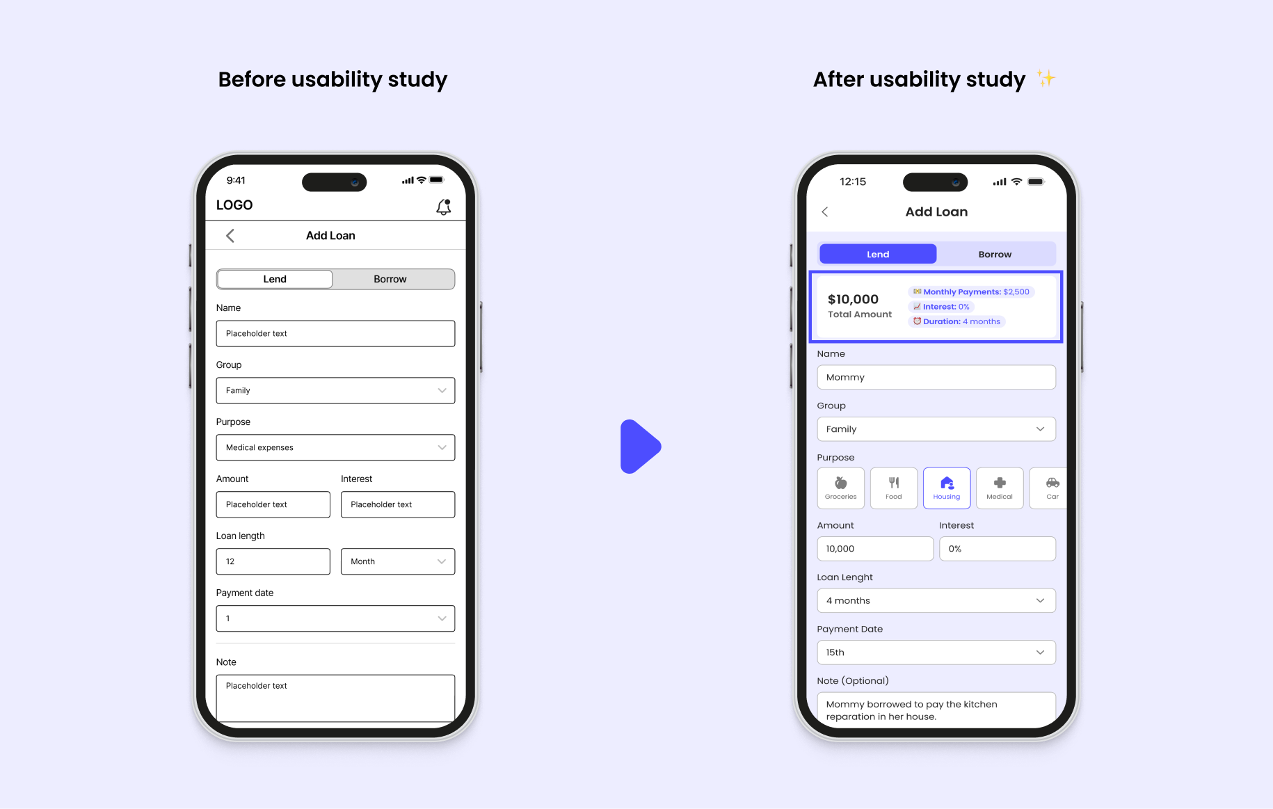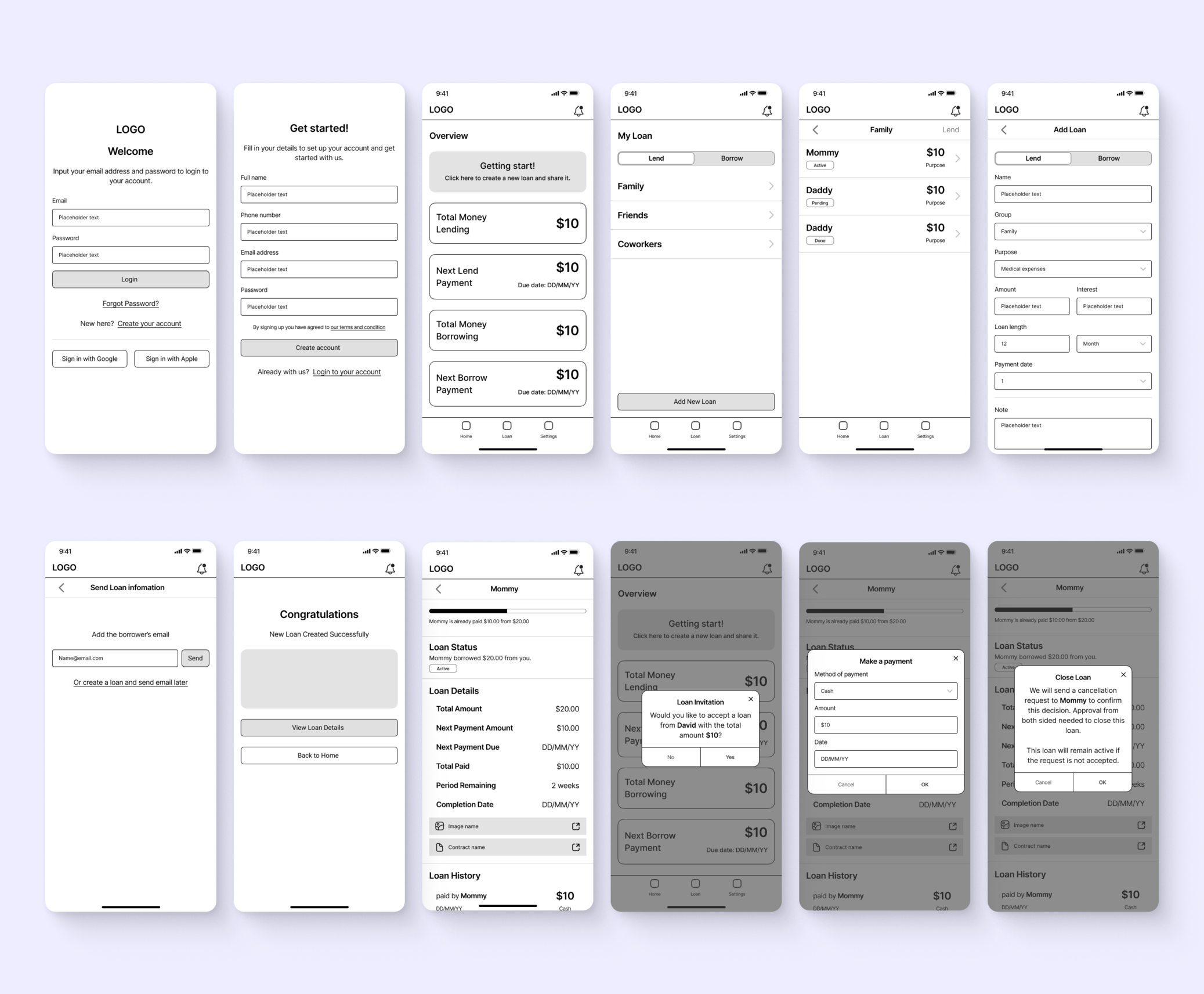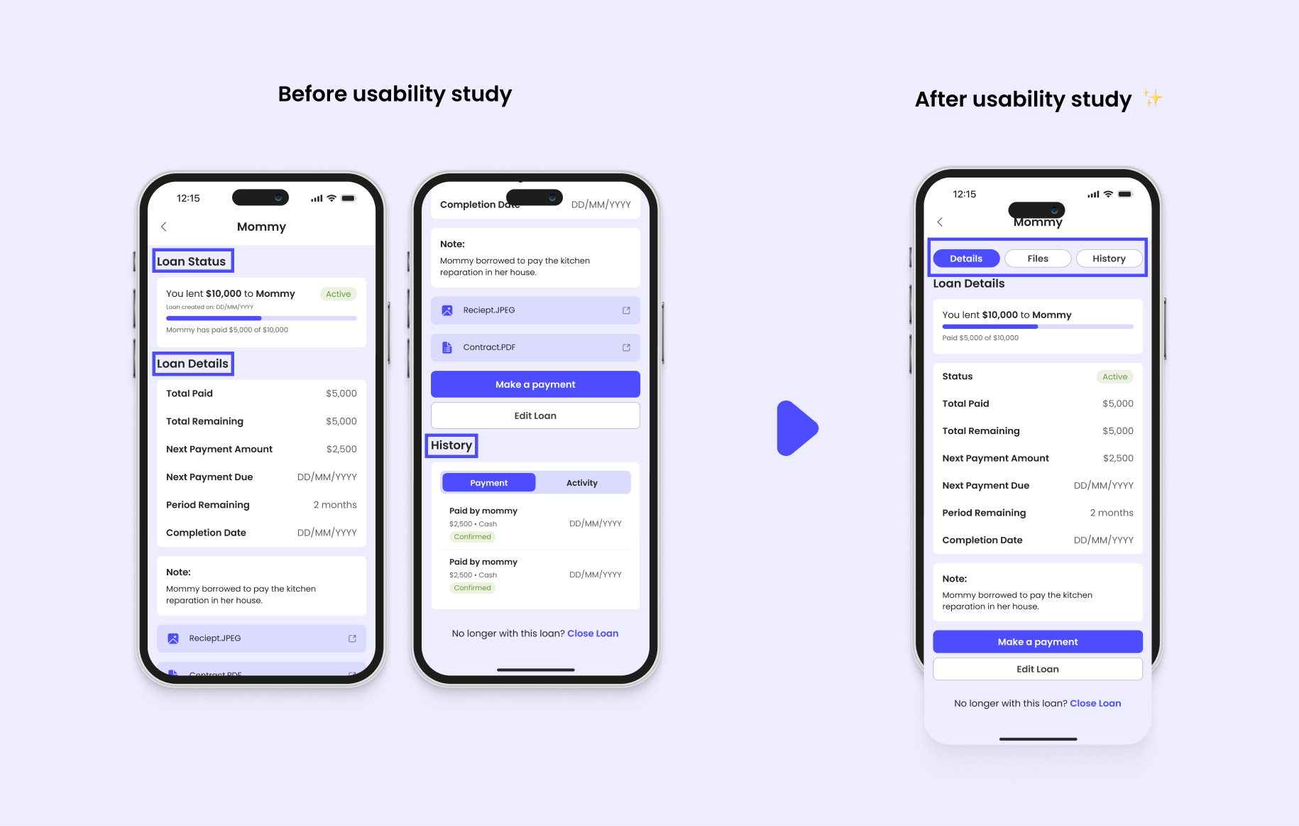 I put comprehensive insights into three user flows within the capabilities of loan tracking app.