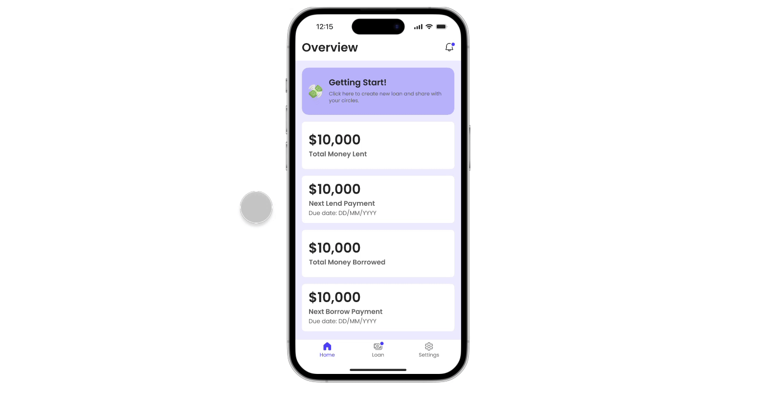Users can easily create a record and tracking for loans. Each loan entry includes details such as the amount of borrow/lend, repayment timeline, the type of loan and any associated notes & files.